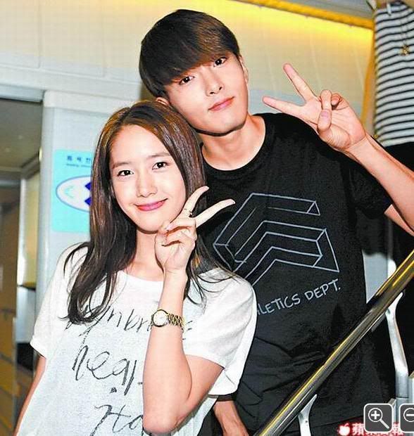「少女時代」潤娥(左)和「Super Junior」的厲旭在包機上合照。韓聯社